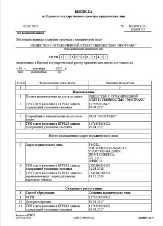 ВЫПИСКА ИЗ ЕДИНОГО ГОСУДАСТВЕННОГО РЕЕСТРА ЮРИДИЧЕСКИХ ЛИЦ
